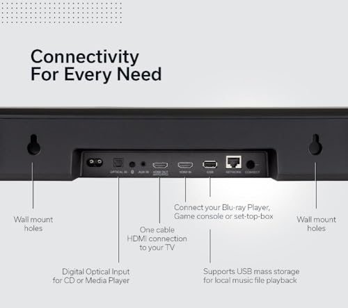 - POWERFUL AUDIO FROM A COMPACT SOUND BAR – Upgrade your movie & music experience with the 4.0 driver configuration in its slim 26" design for home audio, saving space and delivering balanced sound everywhere