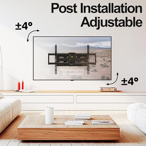 • Adjustable View Comfortable: How about get the more flexible viewing angel? Full motion tv mount includes +5° /-15° tilt to reduce glare, ±45°swivel, level adjusts ±4° for maximum viewing flexibility. All these will make you find the most comfortable and healthiest viewing position. (Note: max. swivel angle depends on screen size)