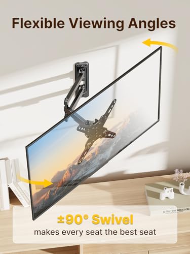 - SPACE-SAVING & ULTRA SAFE DESIGN- Enjoy a neat and orderly viewing experience with our TV mount. TV wall mount can pull out to 14.6"or retract back to 2.6" from the wall. You can fold to tuck-in closely to the wall when TV left unused. Its built-in cable management design can effectively hide and organize all cables, keeping your space neat and orderly. Wall -mounting TV in home theater also protects family safety from TV tip-over, it works perfect as corner TV mount, living room, bedroom, kitchen, studio, office, etc.