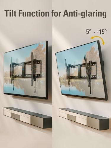 - Large Tilting Angle with Tool-Less Handle: Tilting TV Wall mount can tilt your TV forward up to 15° for anti-glaring, and backward up to 5° for easy cable access.