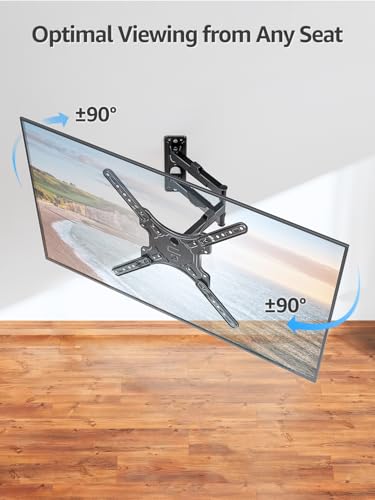 - Full Motion for Optimal Viewing: Achieve the perfect viewing angle in any room with full-motion articulating TV mount by MOUNTUP. Designed for optimal flexibility, it tilts -10° to reduce glare and swivels +/-90° for wide-angle viewing. The articulating arm extends up to 15.3 inches from the wall, bringing your TV closer for a more immersive experience. Additionally, fine-tune the leveling +/-3° for that just-right picture angle