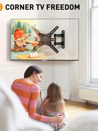 - SPACE-EFFICIENT TV SETUP: Our small TV mount is designed for space efficiency, with a compact 3.39" retraction and extended 14.49" reach. This corner TV wall mount enables flexible TV positioning, even in tight corners, while keeping it safely out of reach of kids & pets.