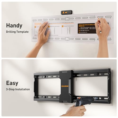 - Easy to Install: Step-by-step instructions, drilling template, and mounting hardware are included for fast and hassle-free installation. The TV bracket can be installed on 16”/18”/24” studs, concrete, or brick walls. Do not install on drywall alone.