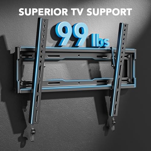 - UNIVERSAL DESIGN: Rigorously safety tested, Our ultra strong TV mount fits most 23"-55" TVs weighing up to 99lbs. Solid and sturdy TV bracket with compatible faceplate that fits VESA patterns from 100x100mm to 400x400mm. Can be conveniently mounted on 8" or 16" wood stud walls and concrete/brick walls. Please check the VESA pattern of your TV before purchasing.Please do not install on drywall alone.If your wood stud spacing exceeds 16 inches, please refer to the 16", 18", 24" wood stud full motion TV mount PILTK4