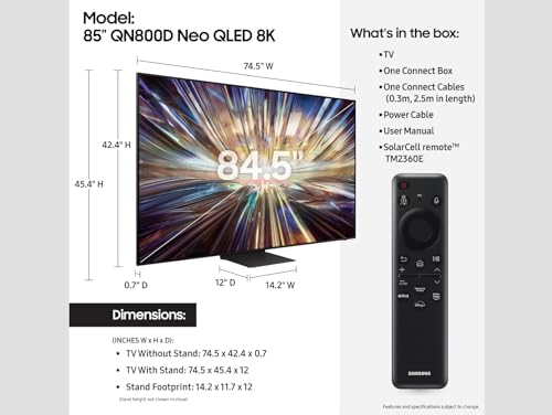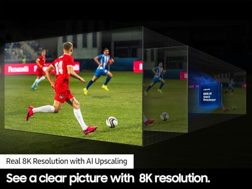 - REAL 8K RESOLUTION w/ AI UPSCALING: 8K resolution instantly improves as you watch for 4x higher resolution than 4K— for everything from games to movies, all thanks to 512 AI neural networks that help update each scene¹