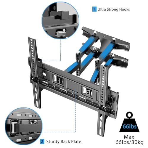 - 【Robust & Safe Construction】 Our large size heavy duty TV bracket is made of cold rolled steel, swivel and tilt designed with 6pcs articulating arms to keep your TV steady, even at full extension. Max Load is 99lbs, greater sense of security. Whether you are mounting in the living room, bedroom, or children’s room, you can enjoy peace of mind knowing that your TV is secure.