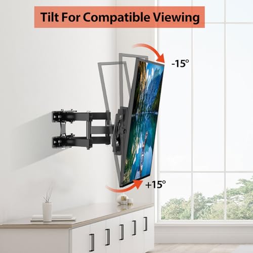 - 【Adjustable Optimal Viewing】Our extension rotation TV mount features +15°/-15° tilt to reduce glare, +/-45° swivel to redirect the screen angle, reducing neck or eye strain. It will provide most comfortable and ergonomic viewing angles.