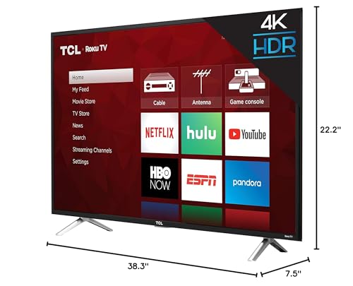 - Dimensions (W x H x D): TV without stand: 38.3" x 22.2" x2.9", TV with stand: 38.3" x 24.4" x 7.5"