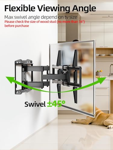 - Saving Space: This dual arm mount Swivel and tilt with 6 arms that can pull out to 16.61"or retract back to 2.52" from the wall. Manage TV cables orderly through the velcros, which save valuable space for you and make your house look neat.