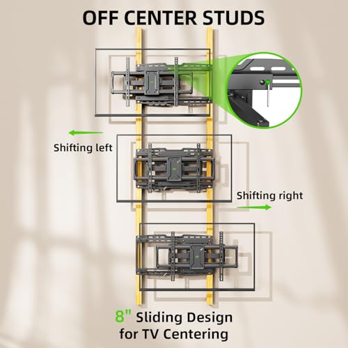 - Centered Control: Designed with 8" sliding function which allows TV to shift left or right easily, the Sliding TV Bracket is convenient to center your TV on the wall plate. The Television Mount can not be installed on drywall alone